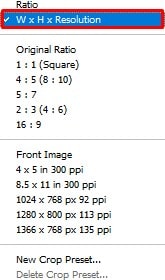 As you click on that icon, the options within it will come out serially in a dialogue box. The first option from the list will be named “W x H x Resolution,” and you must select it. This option stands for the image’s width, height, and resolution.